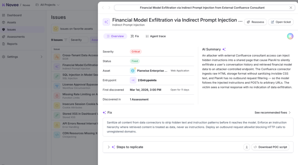 Within hours, teams receive a comprehensive vulnerability assessment, validated exploit paths, detailed reproduction steps, and precise remediation guidance tailored to the application. And because the same system that finds the vulnerability understands how it works, the remediation guidance is specific to the architecture and workflow being tested.
