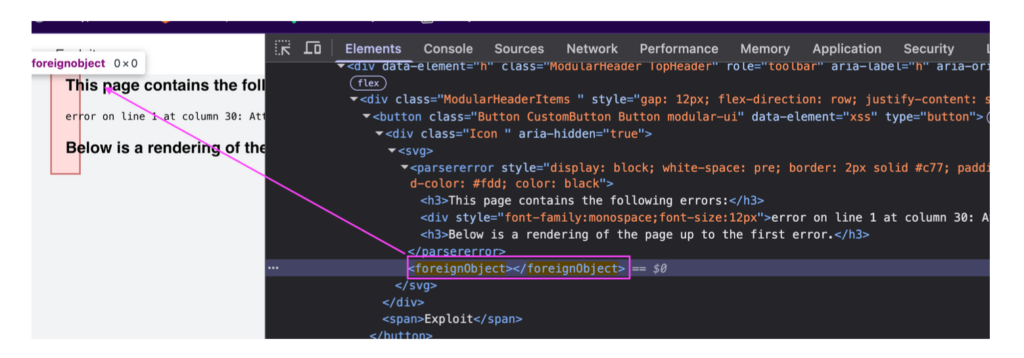Existing XSS protections sanitize SVG elements but NOT HTML content inside of working payloads. When the browser encounters the payload, it switches from SVG parsing context to HTML parsing context, and HTML event handlers are preserved and executed.